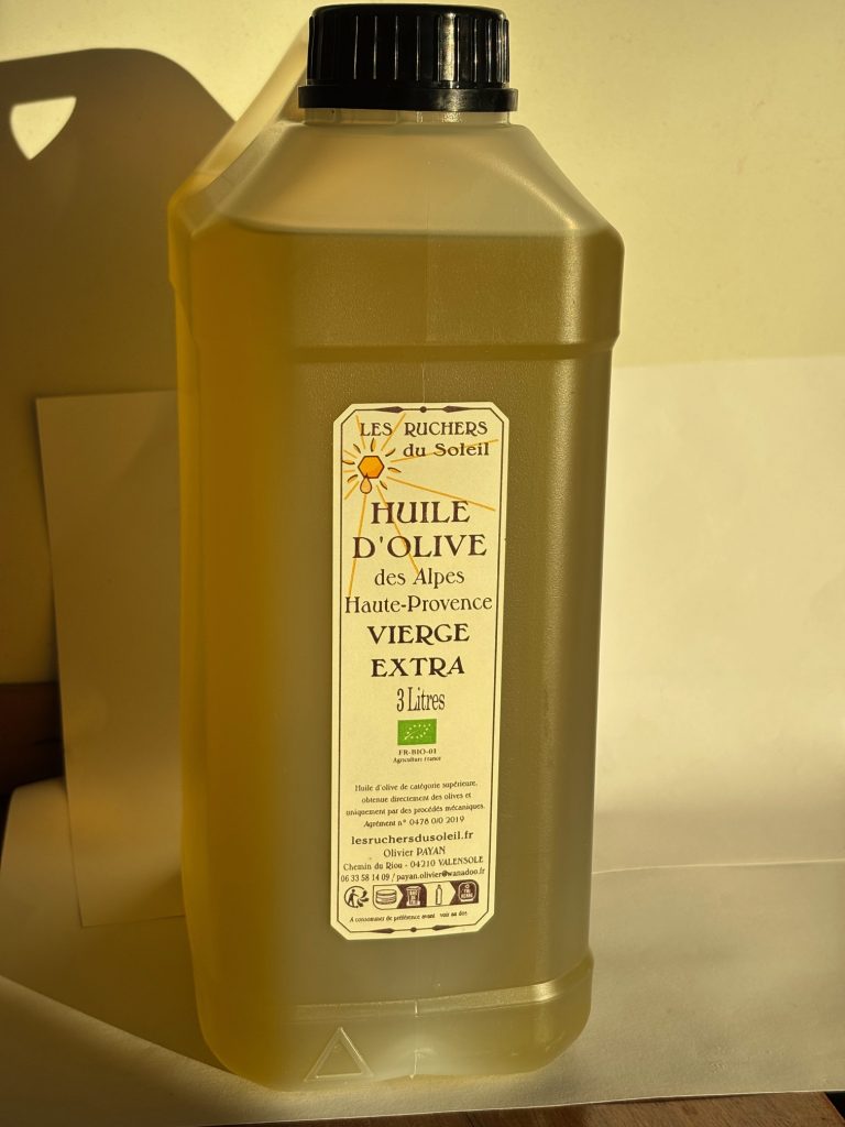 Au cœur du Verdon, nous vous proposons une huile d’olive bio produite dans le respect du terroir et du travail artisanal. Issue d’oliviers cultivés sans aucun produit chimique, notre huile révèle une saveur fraîche, fruitée et authentique. Vous pouvez la découvrir et la déguster sur place, directement à la miellerie, pour apprécier toute la finesse de son goût avant l’achat. Une belle façon de rencontrer le producteur, de comprendre notre méthode de fabrication et de repartir avec une huile d’olive bio authentique, pleine de soleil et de caractère.